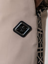 De tracksuit is afgewerkt met een gewoven band met link, wat zorgt voor een stijlvolle en sportieve uitstraling. Op zowel de borst als de broek prijkt een elegante logo-plaat, subtiel maar uitgesproken genoeg om het geheel een luxe touch te geven.